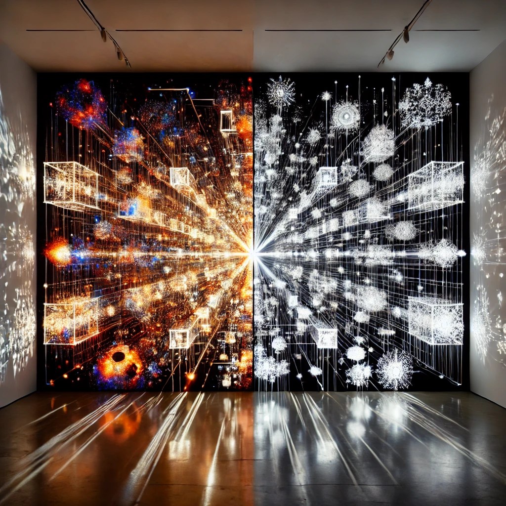 - Visualize an artwork where the medium is light itself, bending and shaping to reveal hidden patterns of existence.